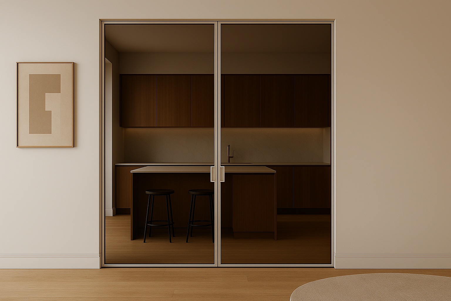 Scintillante e leggera, la porta ARIA trasforma ogni ingresso in una finestra sulla luce. Una modernità che fluttua tra eleganza e trasparenza. Un invito a immergersi in spazi dove la luce danza liberamente.